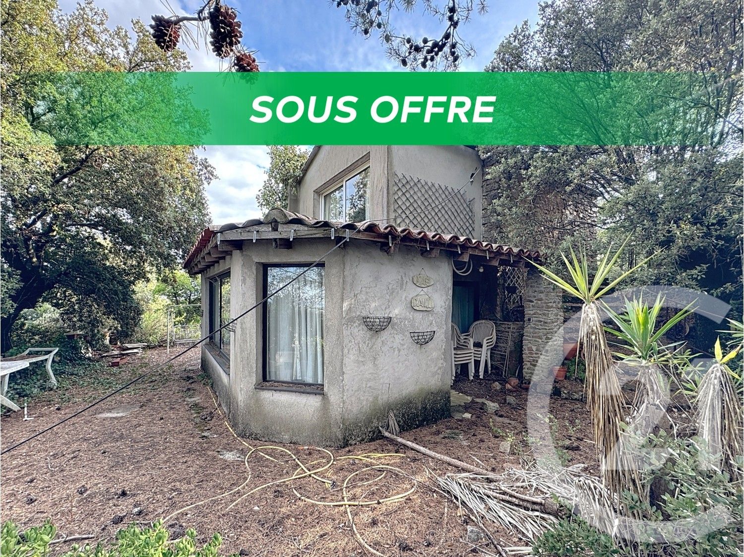 Vous trouverez une ancienne bergerie de 50m² environ au rez-de-chaussée une pièce à vivre lumineuse entourée de végétation, une cuisine indépendante, WC et salle de bains, a l'étage une grande chambre avec rangements, un coin bureau qui peut faire office de chambre d'amis.