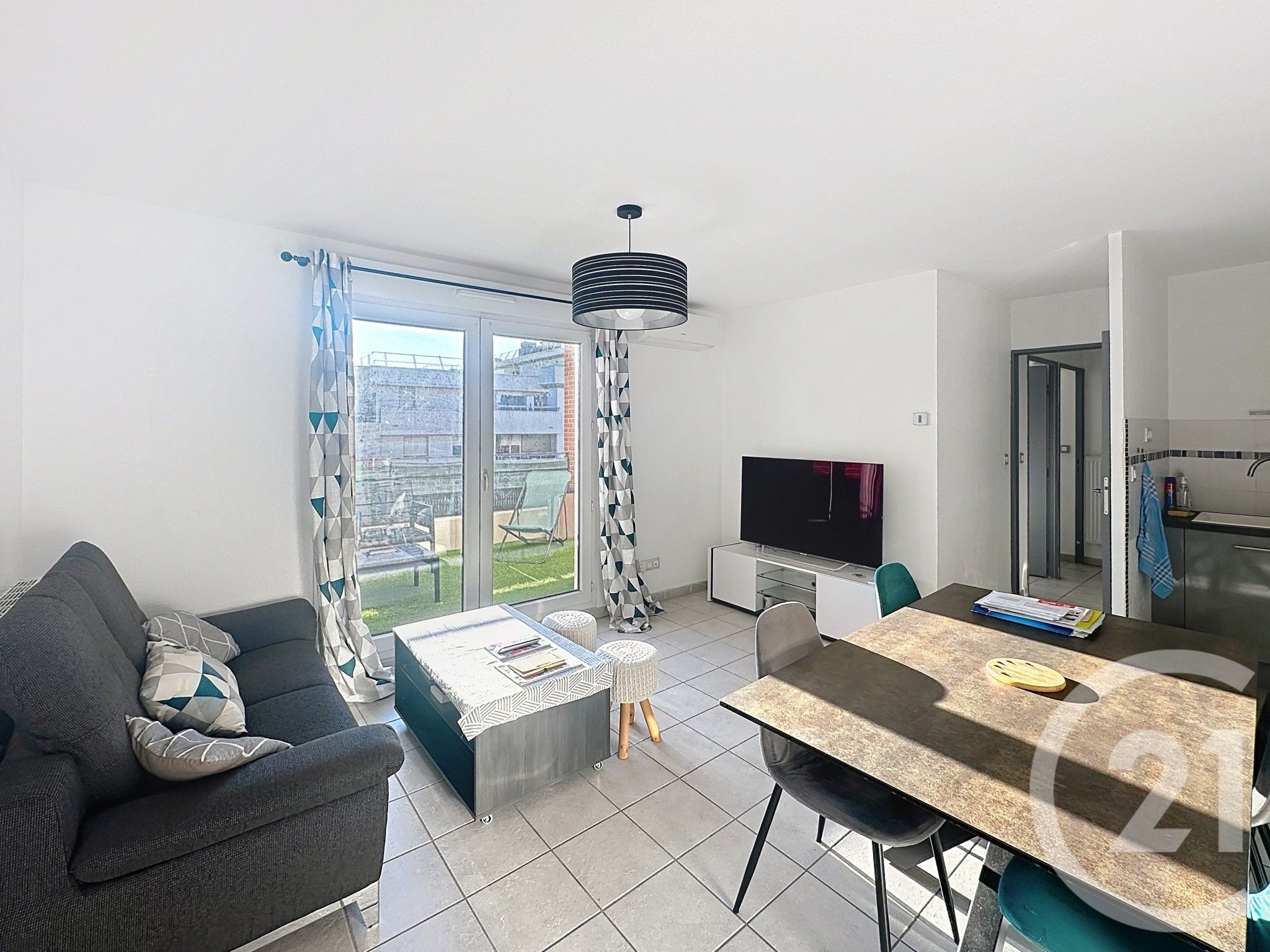Appartement 3 pièces au 3ème étage avec ascenseur. Hall d'entrée avec placard, séjour cuisine aménagée ouverte sur le salon, deux chambres avec placard, salle de bains, WC séparés. Terrasse ouverte exposée sud-ouest.